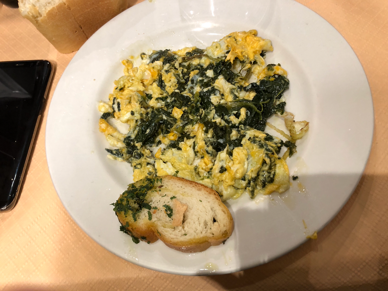 위에서부터 차례대로 시금치 스크램블에그, 소고기사골국(?), 송아지스테이크(라기엔 약간 슈니첼 같았다), 그리고 마지막 디저트 커스타드 푸딩.