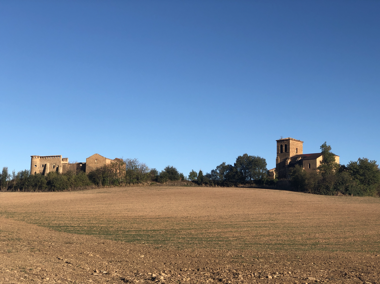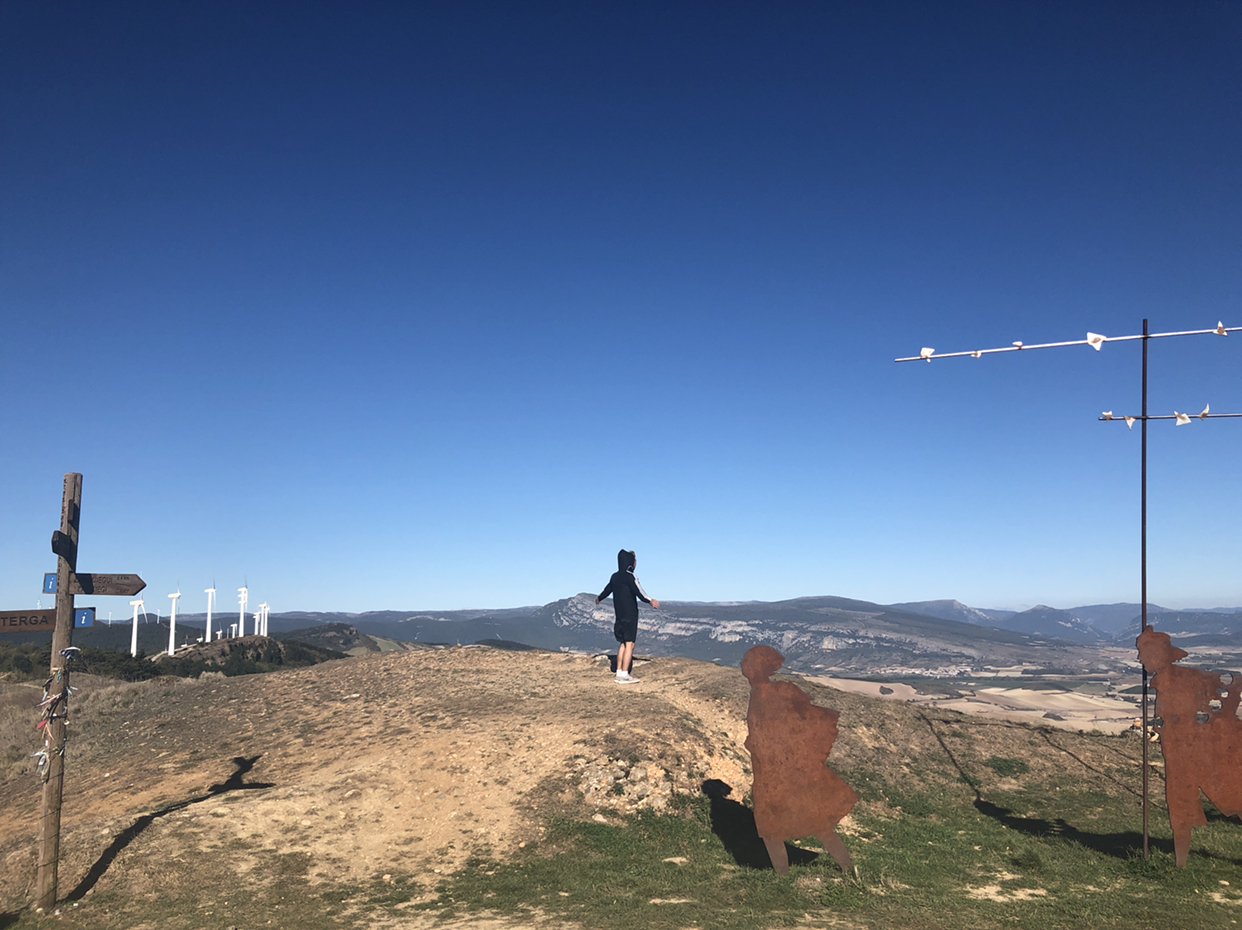 처음으로 쉰 마을 Zarikiegi, 날씨가 점점 추워지려는지 5분정도 앉아있었는데 갑자기 추워졌다. 언덕위에 마을이 자리한 모양새가 참 예쁘다. 여기서 가볍게 아침을 먹고 다시 출발. 우리는 용서의 언덕을 넘는다.