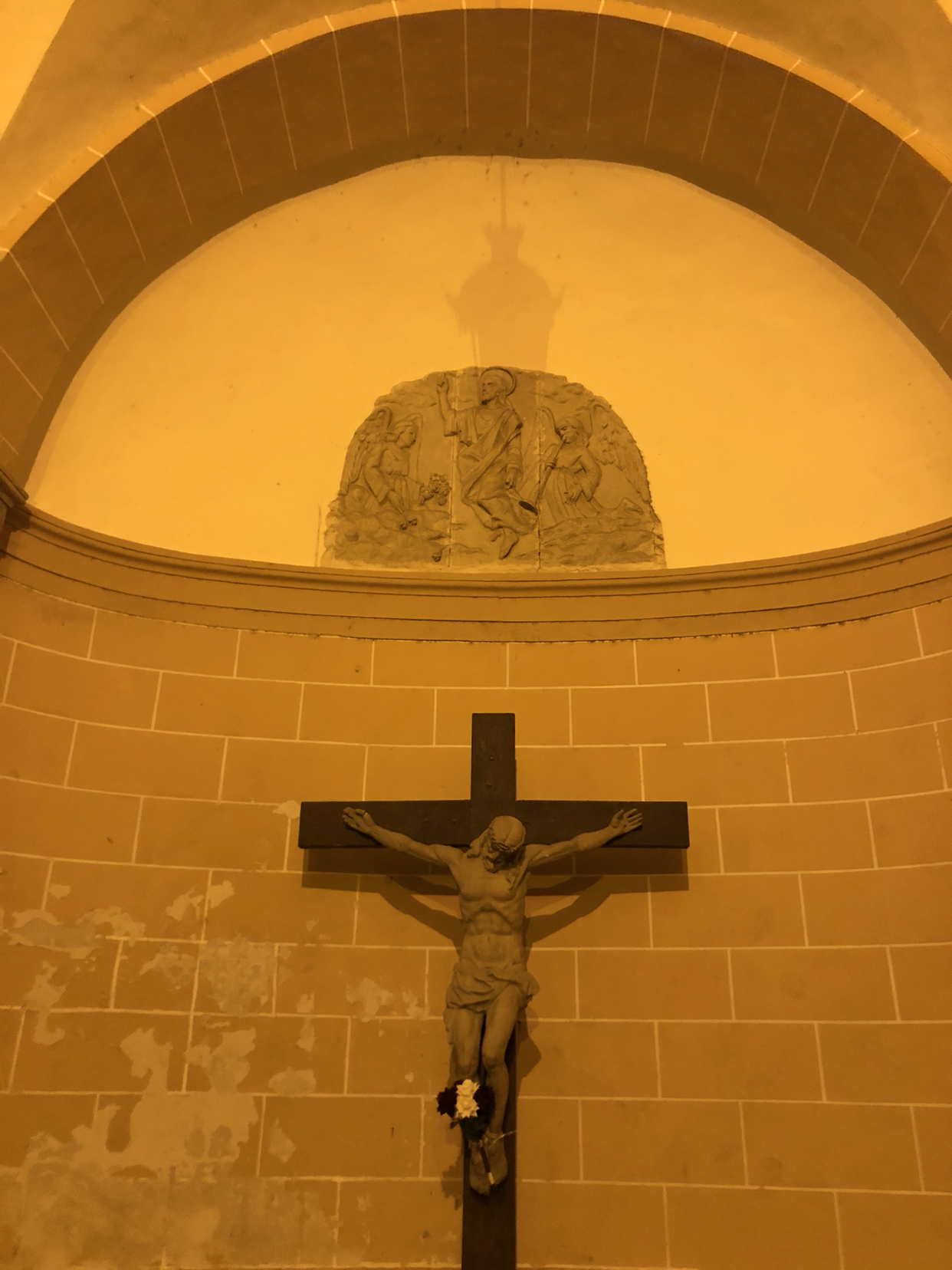 성당을 나오는 길에 십자가에 박혀있는 예수상이 있었는데 누군가가 다리에 꽃을 꽂아놨다. 심지어 생화였고 파릇파릇했다. 아마 누군가 주기적으로 교체를 하겠지? 정말 세심한 배려인것 같다. 피흘리는 부분을 꽃으로 가려놓다니.