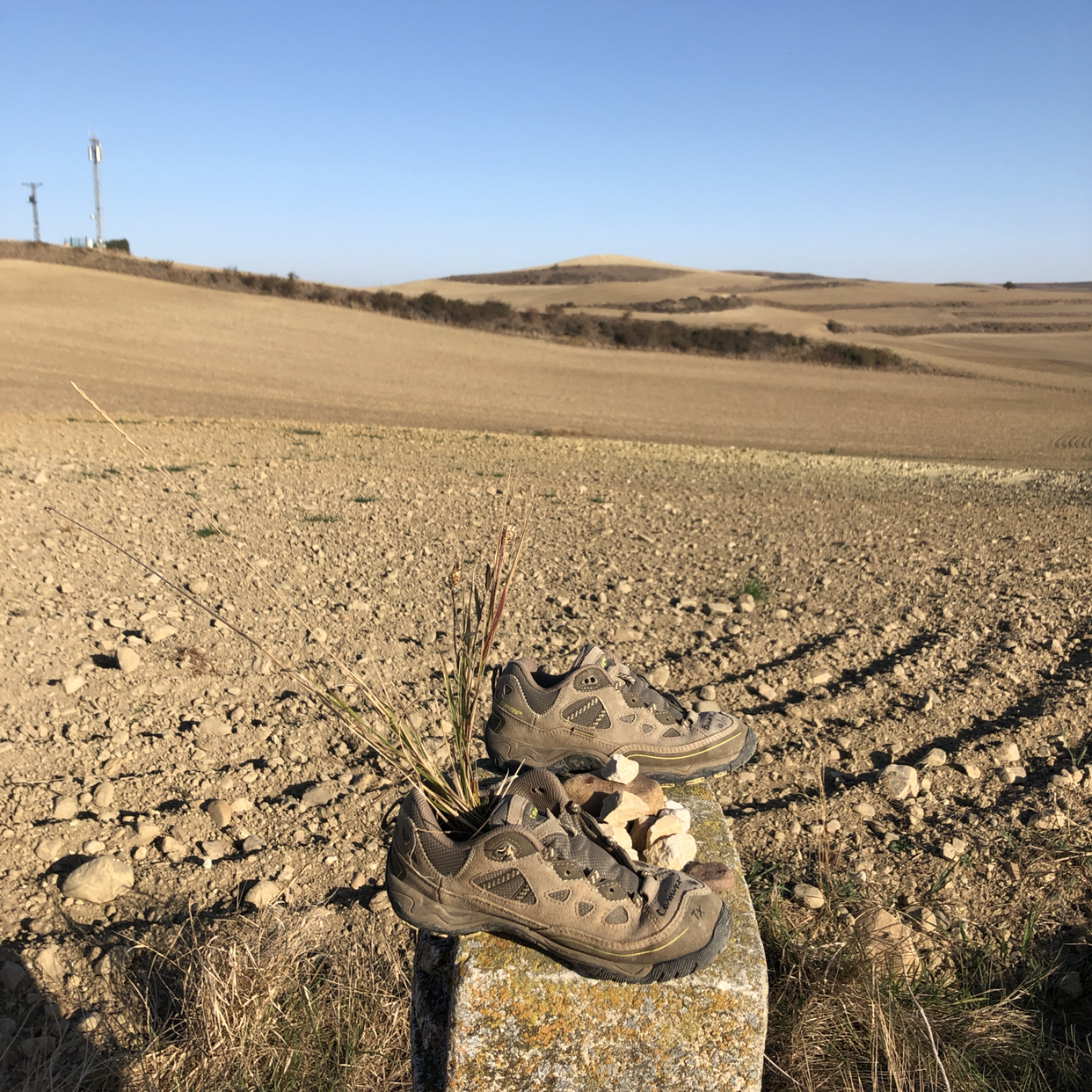 순례길을 걷다보면, 이렇게 신발들이 가지런히 놓여져 있는것을 볼수있다. 연유는 모르겠지만, 다 각자의 사정으로 놓고 간 거겠지. 뭔가 가만히 보기 안쓰러워 화분처럼 풀을 넣어주고 왔다.