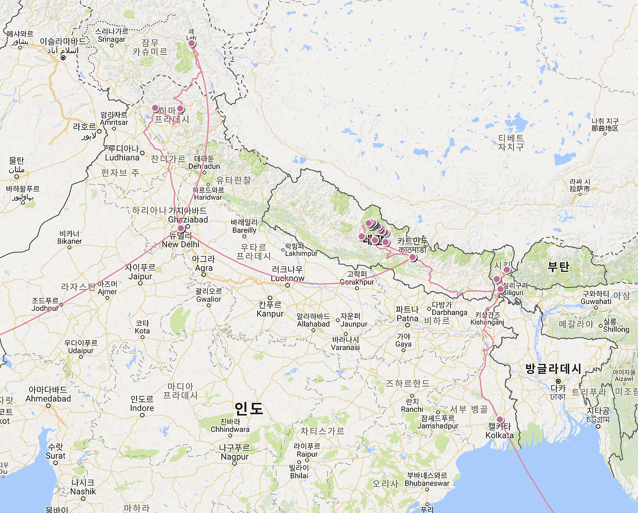 인도/네팔 루트에서는 인도로 들어가 네팔에 갔다가, 다시 인도로 나오는 루트를 계획했다.