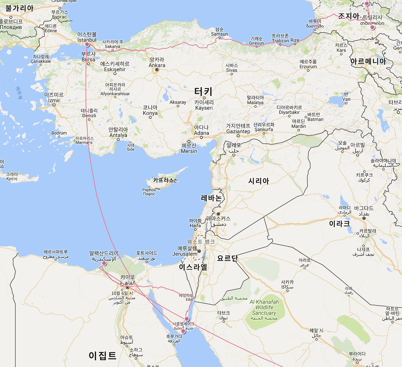 우선적으로 현재까지 온 루트다. 크게 [동남아] - [인도, 네팔] - [서아시아] - [동유럽] - [서유럽] - [북미 서부]로 왔다.(이집트도 서아시아로 분류)