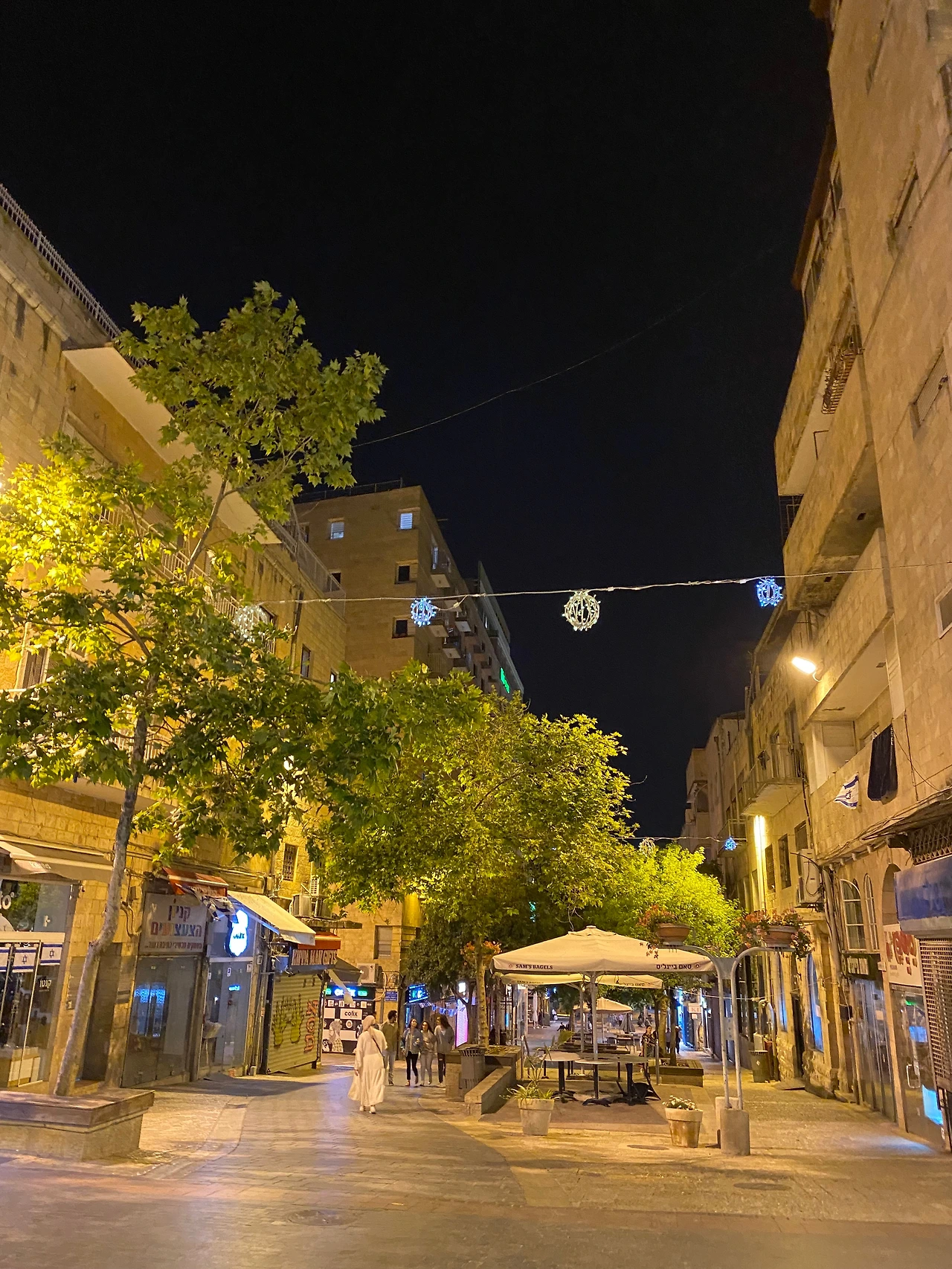 어제 저녁부터 시작되었던 슬픈 날은 오늘의 해가 지면서 끝났다. 그리고 해진 후, 저녁부터 이스라엘의 독립기념일 시작이다! 이 나라의 제일 기쁜 날이 되었다. 알고 온 것은 아니었지만 얼떨결에 맞이한 흥겨운 축제에 어안이 벙벙했다. 벤구리온 거리에는 젊은이들이 가득 찼다. 손나팔을 불고, 국기를 두르고, 스프레이를 뿌리고, 춤을 춘다. 여기저기 노랫소리가 쩌렁쩌렁 울리고 도시는 들썩인다. 코시국이 무색하게 사람을 헤치고 다녀야 할 정도다. 젊은이들의 열기는 후끈하지만, 나는 발바닥이 화끈거렸다.