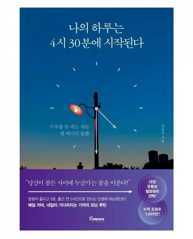 그러던 어느 날, 유튜브에서 매일 새벽 4시 30분에 일어나는 김유진 변호사의 영상을 보았다. 대단하다는 말 밖에 나오지 않았다. 고요한 새벽에 자신만의 시간을 갖는 그녀의 모습이 보기 좋았다. 이후 그녀의 유튜브 채널을 들락날락했다. 새벽 기상이 부러웠지만 따라 할 엄두는 나지 않았다.