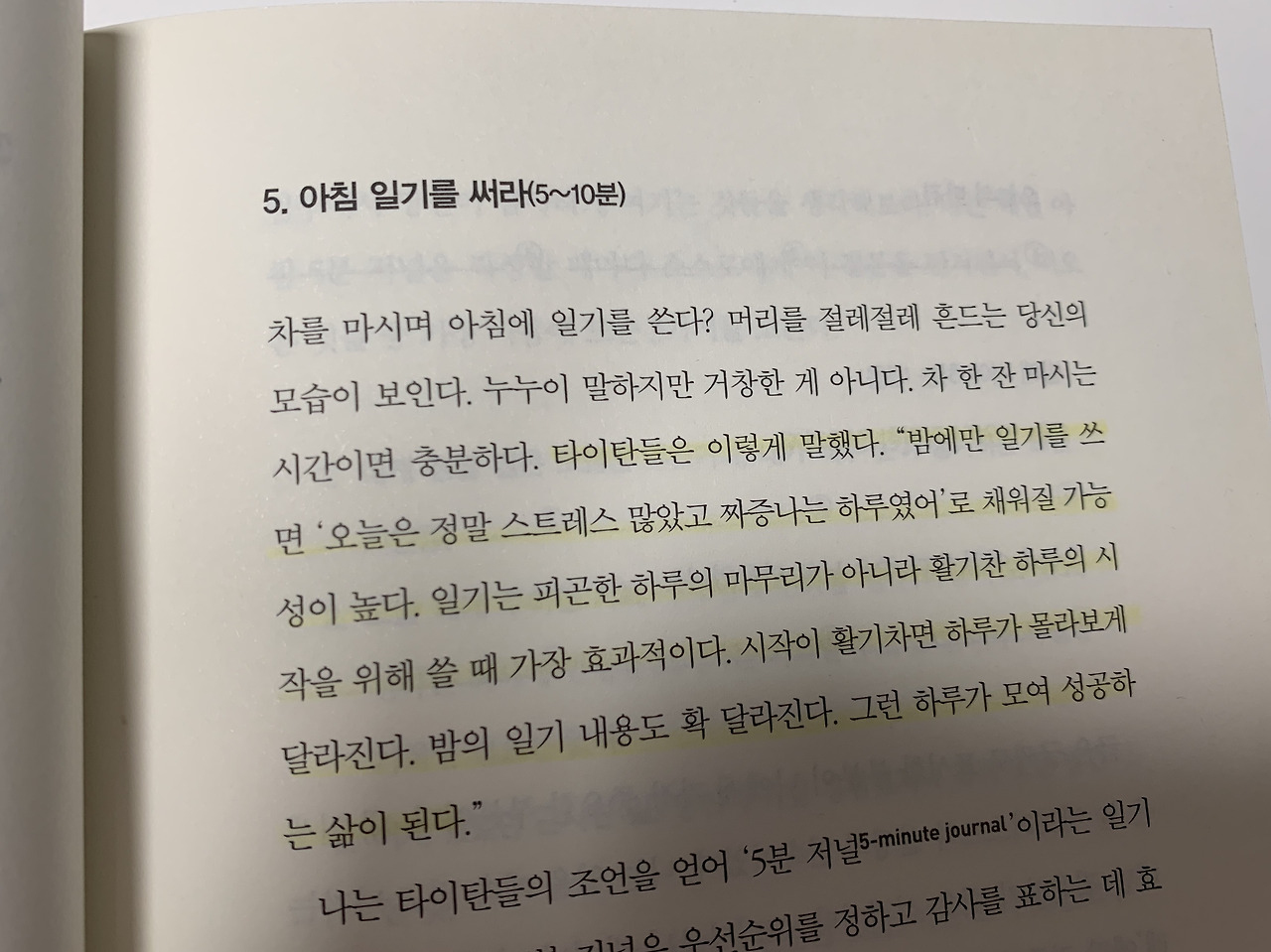 나의 일기는 최근 큰 변화를 맞이했다. '타이탄의 도구들'이란 책을 읽었는데, 최고의 자리에 오른 사람들 중엔 아침 일기를 쓴 사람이 많다고 했다. 저녁 일기만 써온 나에겐 신선한 충격이었다.
