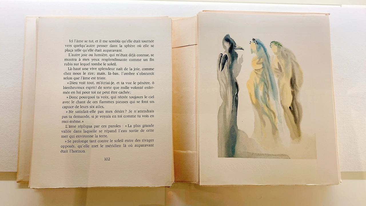 오늘의 북 큐레이션은 고전 300권이 주제다. 전시되어 있는 예술 제본이 내 눈길을 끌었다. 내가 극단적으로 사랑하는 단테 신곡과 일리아스였다. 전시된 책은 초현실주의 작가인 살바로드 달리가 해석한 창의적인 그림이 포함된 책이다. 달리는 자신의 예술 작품으로 대중들과 가까워질 수 있는 방법을 고민했다고 한다. 츄파츕스의 디자인이 달리의 흔적이라는 사실을 처음 알았다. 오늘 초현실주의를 표방했으나 대중을 위한 예술을 고민한 달리가 진짜 ‘달리’ 보였다.