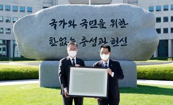 <좌: 국정원 원훈석, 우: 처음처럼>