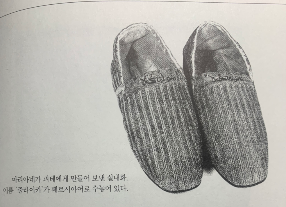 마리아네가 괴테를 위해 만들어 ‘줄라이카’라고 페르시아어로 수놓은 슬리퍼는 스위스의 구두 박물관에 있다고 한다. 언젠가 이 모든 공간들을 방문할 일이 있을 것이다. 그때 나는 이 아픈 가슴을 어루만지며 이루지 못한 남녀의 사랑을 함께 아파할지도 모르겠다.