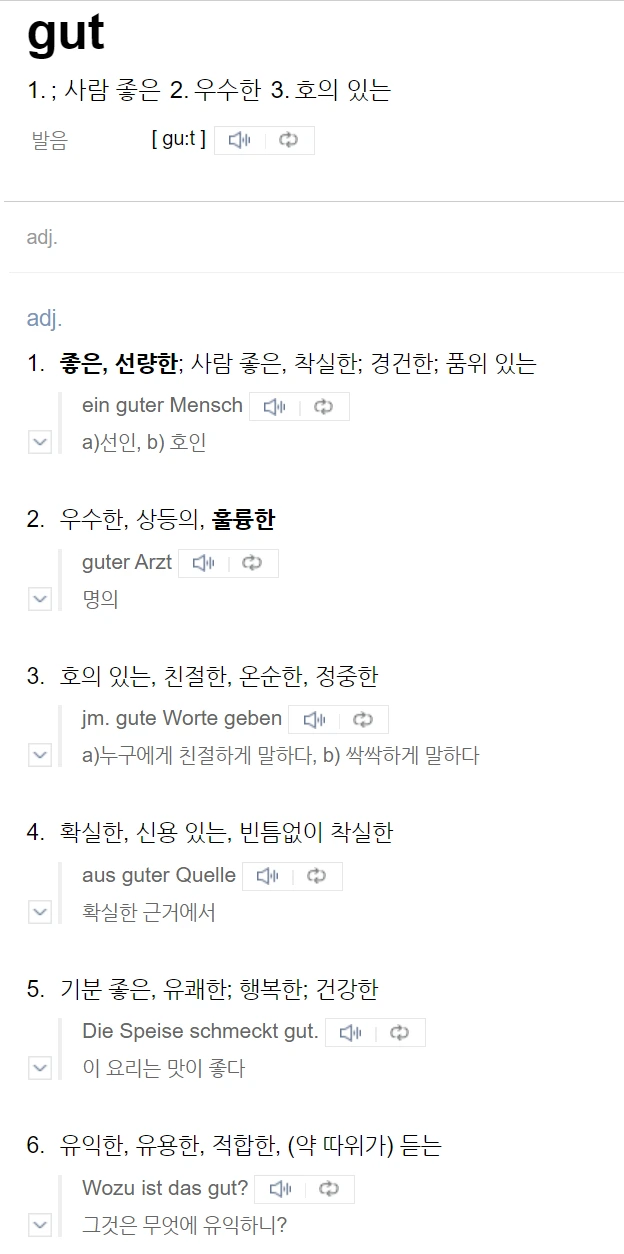 <독일어 Gut의 용례: gut은 하나의 단어로 선과 악을 모두 지칭한다. 좋음=선의 구조를 갖고 있다. 출처: 네이버 독일어 사전 >