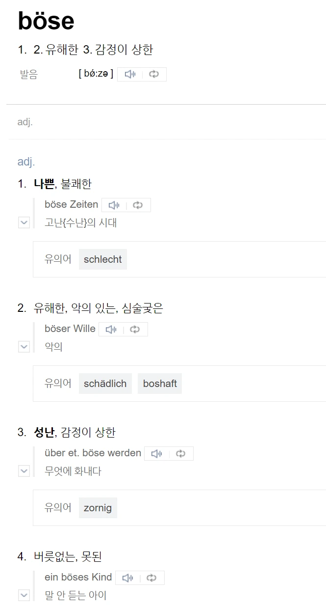 <좌: 나쁨(schlecht)의 용례, 우: 악(böse)의 용례