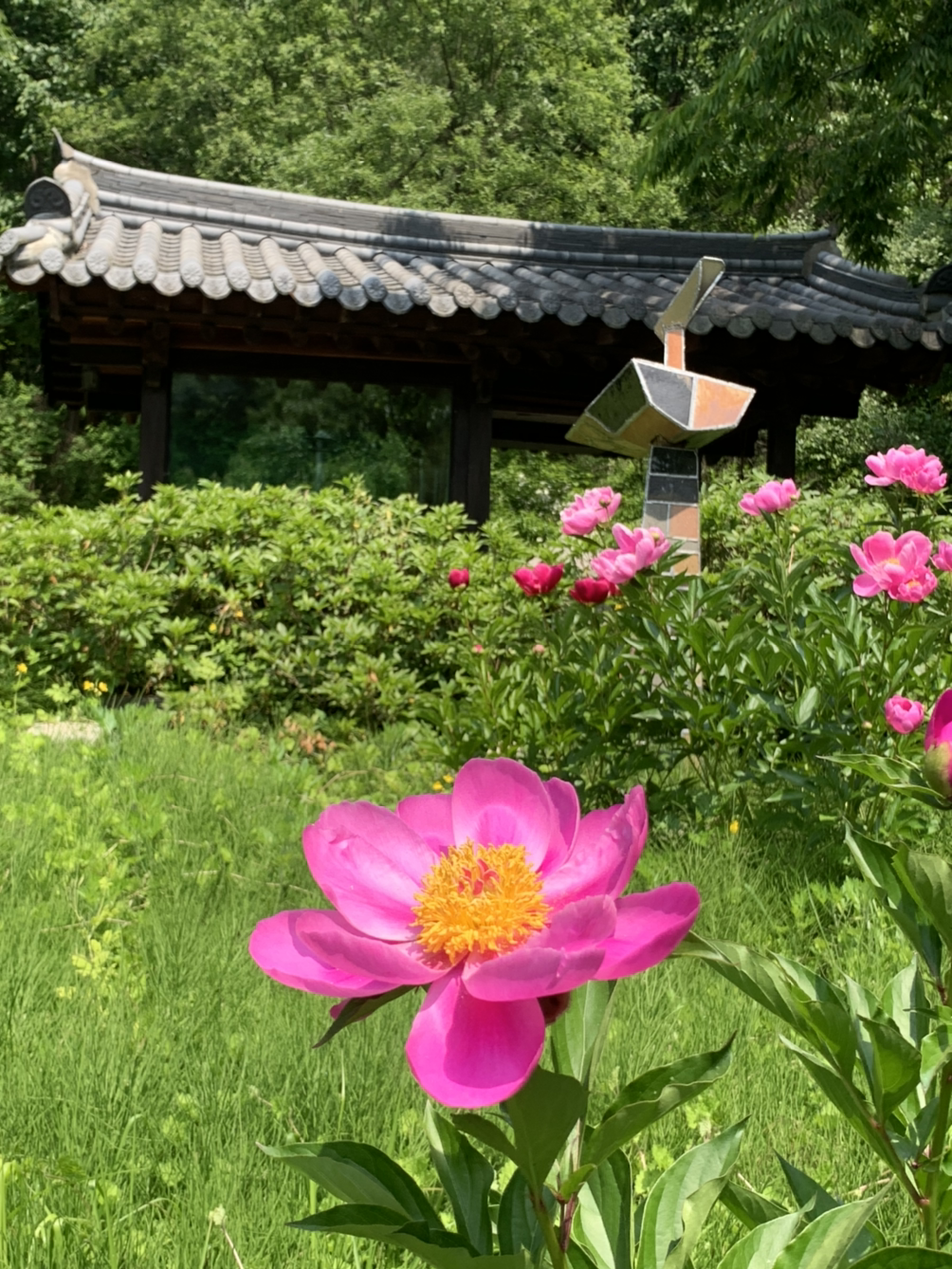 이름 모를 꽃들이 코를 찌르는 향기를 품어내는 계절이다. 바람이 불면 정원의 나무들은 저마다 자기가 살아있음을 알리는 것처럼 온갖 소동을 일으킨다. 서원의 뒤뜰이 보이는 창 밖으로 찬연한 숲의 춤사위를 보고 있노라면 나는 속세를 떠나 무릉도원 속에 들어와 있다는 착각을 할 정도이다. 맑은 흰빛으로 정문을 밝히는 불두화, 수묵화의 연연한 빛깔로 이제 자기 몫을 마무리하는 모란꽃잎, 저 위 시정에 핀 붉디붉은 작약도 찬란한 자신의 한때를 곱게 장식하는 듯하다. 신록의 가지들은 가까운 하늘의 여백을 메우려는 듯 창공을 향해 그 잎사귀를 뻗어 낸다.