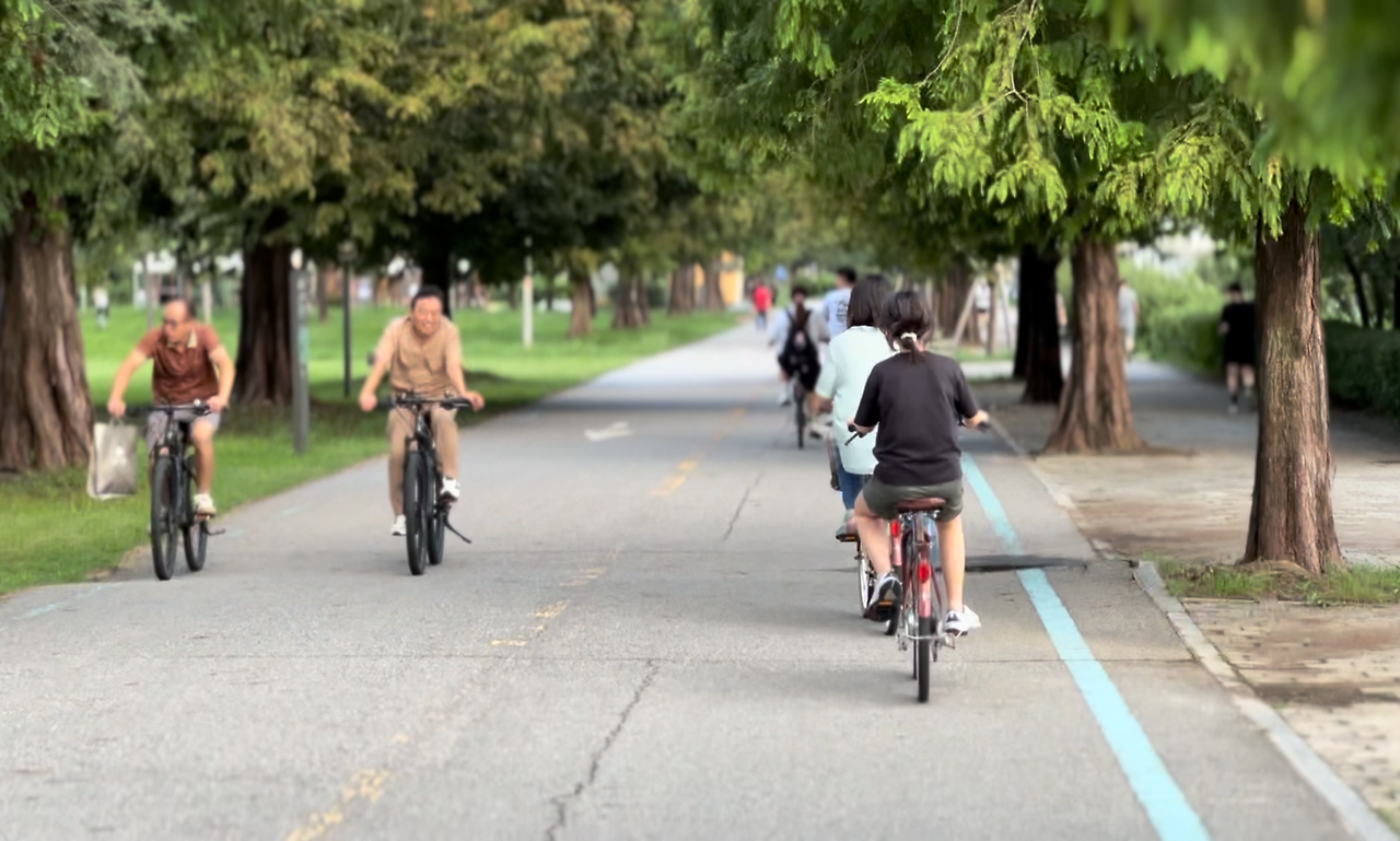 성수동의 유명한 맛집들을 기웃거리다 저녁 무렵이 되자 우리는 한강시민공원으로 향했다. 바람은 선선했고, 하늘은 아직 여름 끝자락의 기운을 품고 있었다. 자전거를 함께 타며 바람을 가르다 보니, 순간순간이 오래된 사진처럼 마음에 새겨졌다. 마무리는 역시 한강의 라면이었다. 흔하디 흔한 라면이지만, 가족과 함께 잔디밭에 둘러앉아 웃으며 나눈 한 그릇은 세상 어떤 진수성찬보다도 따뜻했다.