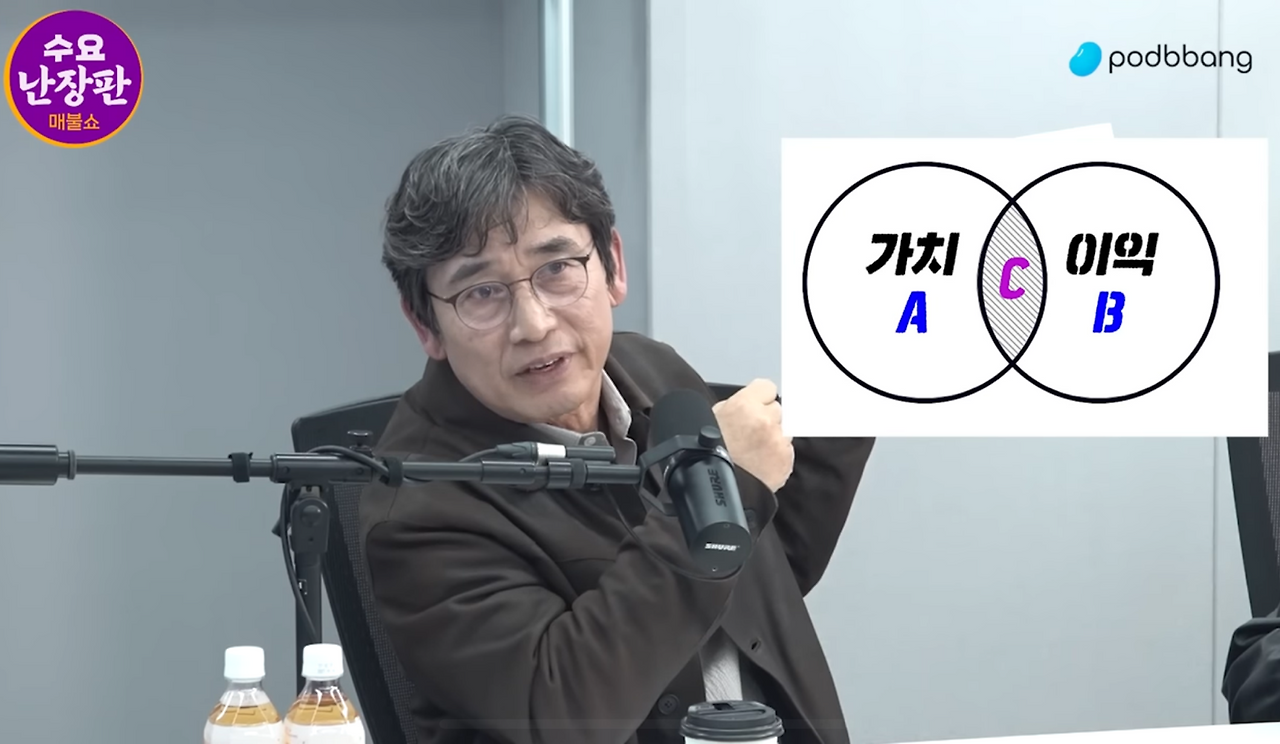 어제 유시민 작가가 매불쇼에 출연해 A(가치)와 B(이익)을 추구하는 그룹으로 나눠 기존 지지층을 A로, 최근 이재명을 지지하는 새로운 지지층을 B로 구분하는 설명을 했다. 그런데 나는 언젠가 그가 같은 프로그램에 나와서 했던 또 다른 말이 생각났다.