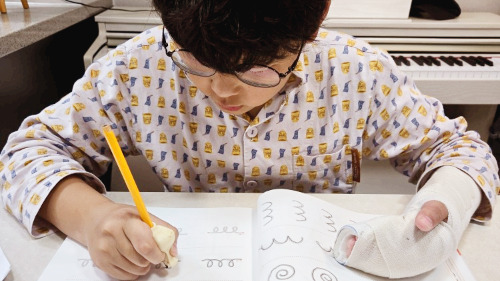 왼손잡이 때문인지, 소근육 발달이 느려서인지, 소근육 발달이 늦어서 왼손잡이인지 인과를 알 순 없지만 어쨌든 우리 집 외계인 거북이는 악필이다. 한석봉이 벌떡 일어나 날아 차기를 해버릴 만큼.