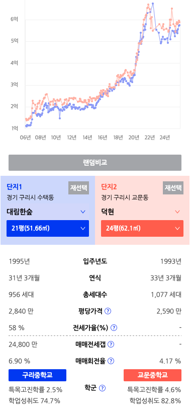 이제 구리에 6억 이하 아파트 단지를 좀 더 살펴보자.