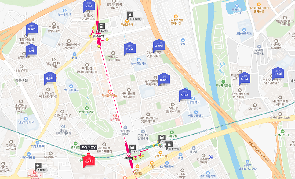 사실 구리역 인근이 더 좋기는 하나 6억 이하 아파트는 보이지 않는다.
