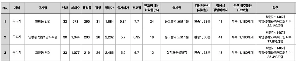 오늘은 이렇게 구리시에 있는 6억 이하 단지를 추려 봤다.