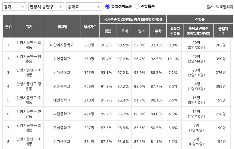 물론 학원가도 중요하지만 인근 중학교의 학업성취도가 더 중요하다.