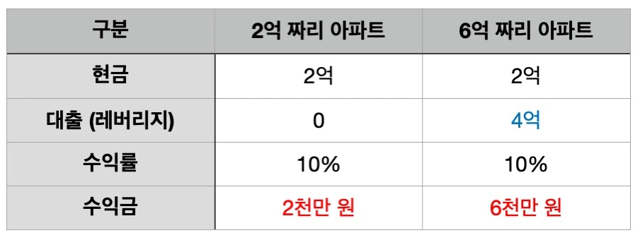 즉, 대출을 잘만 활용하면 훨씬 큰 수익을 얻을 수 있다는 거다.