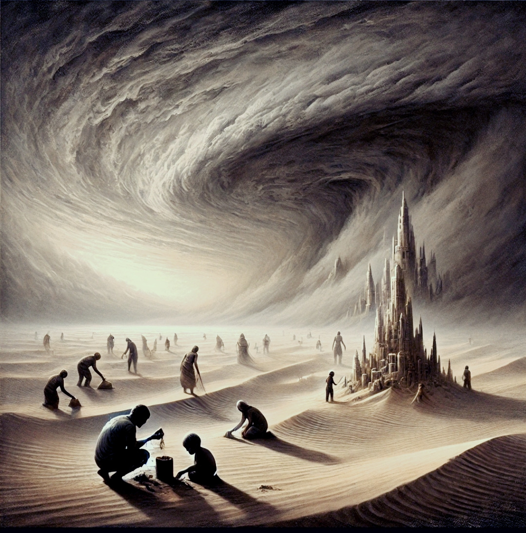 그곳의 하루는 늘 같았다. 아침엔 성을 쌓고, 정오엔 바람이 불어 성이 무너졌다. 해가 지면 사람들은 지친 몸을 끌고 집으로 돌아갔다. 매일의 삶이 무의미하다고 불평하는 이들도 있었지만, 그런 말들은 금세 모래바람에 묻혔다. 어떤 이는 말했다.
