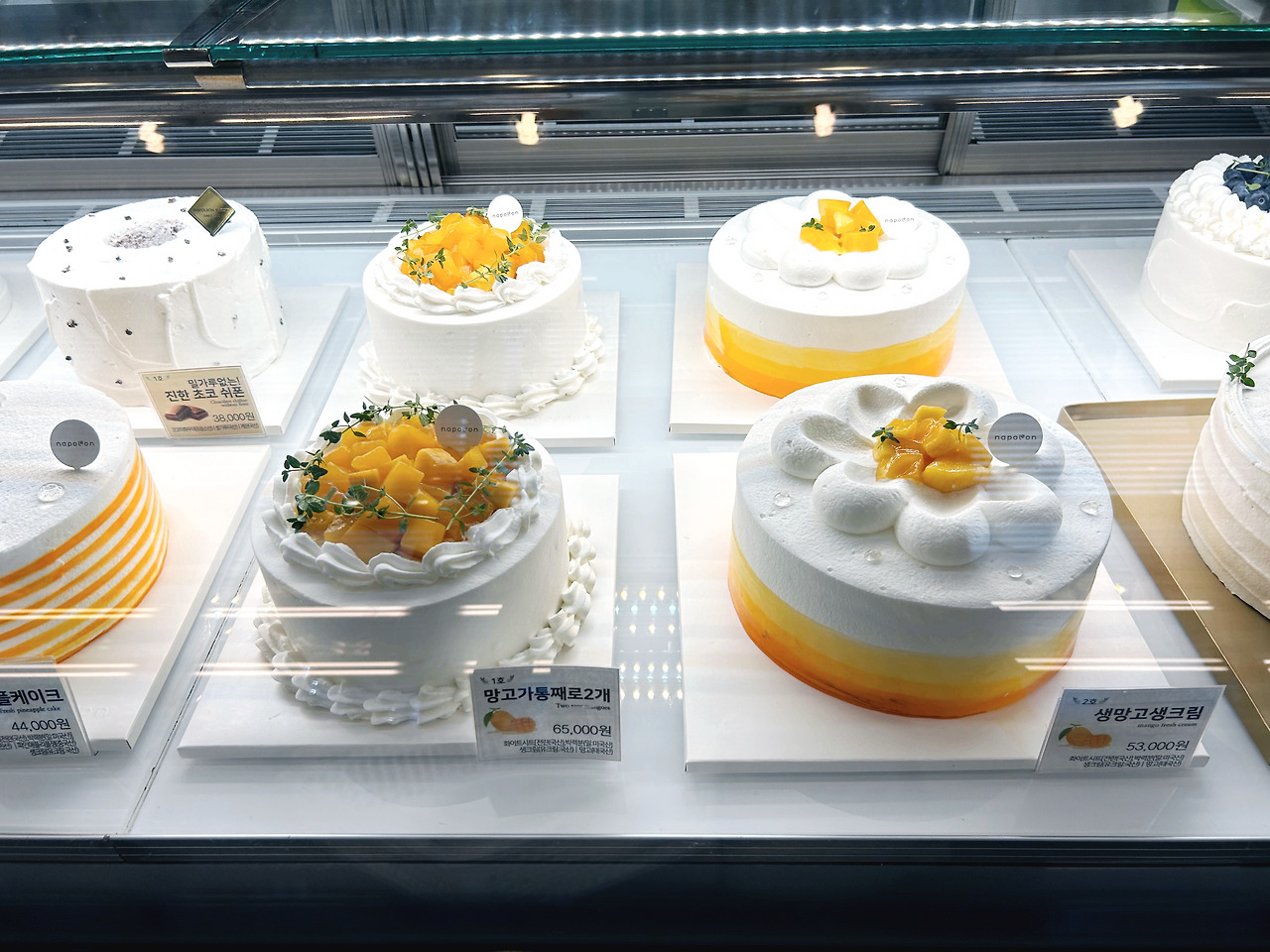 아! 이걸 잊을뻔했네요. 나폴레옹 하면 또 케이크가 최고입니다. 같은 동네에 사는 저의 지인은 일 년에 한 번 생일에 나폴레옹 케이크를 먹으면 성공한 기분이 든다. 고 말했어요. 케이크는 어떤 종류를 골라도 맛있지만 저희 집 인기 케이크는 '겹겹이 부드러운 생크림'과 '망고생크림'입니다.