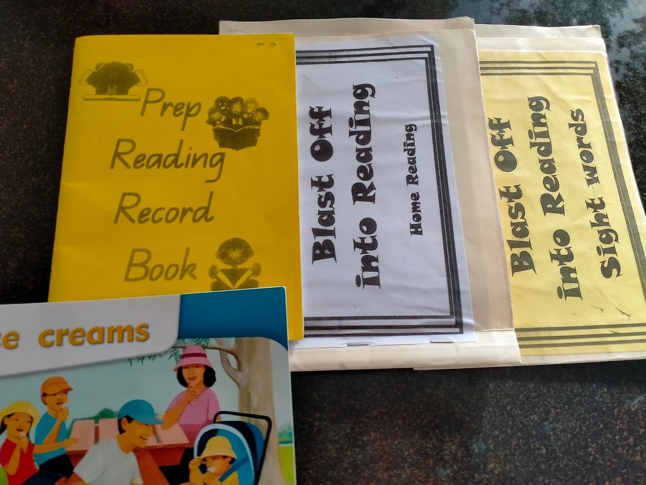 프렙 리딩 북 - 페이지가 10페이지도 안되고 한 문장 정도로만 되어있는 작은 책을 집에서 읽는다.