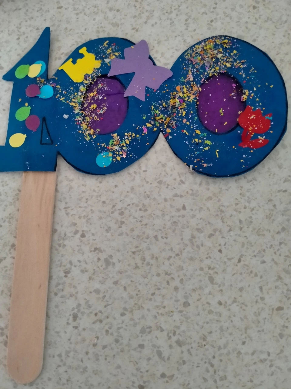학교에서 100일 안경이랑 100일 깃발을 만들어서 집에 들고 왔다.
