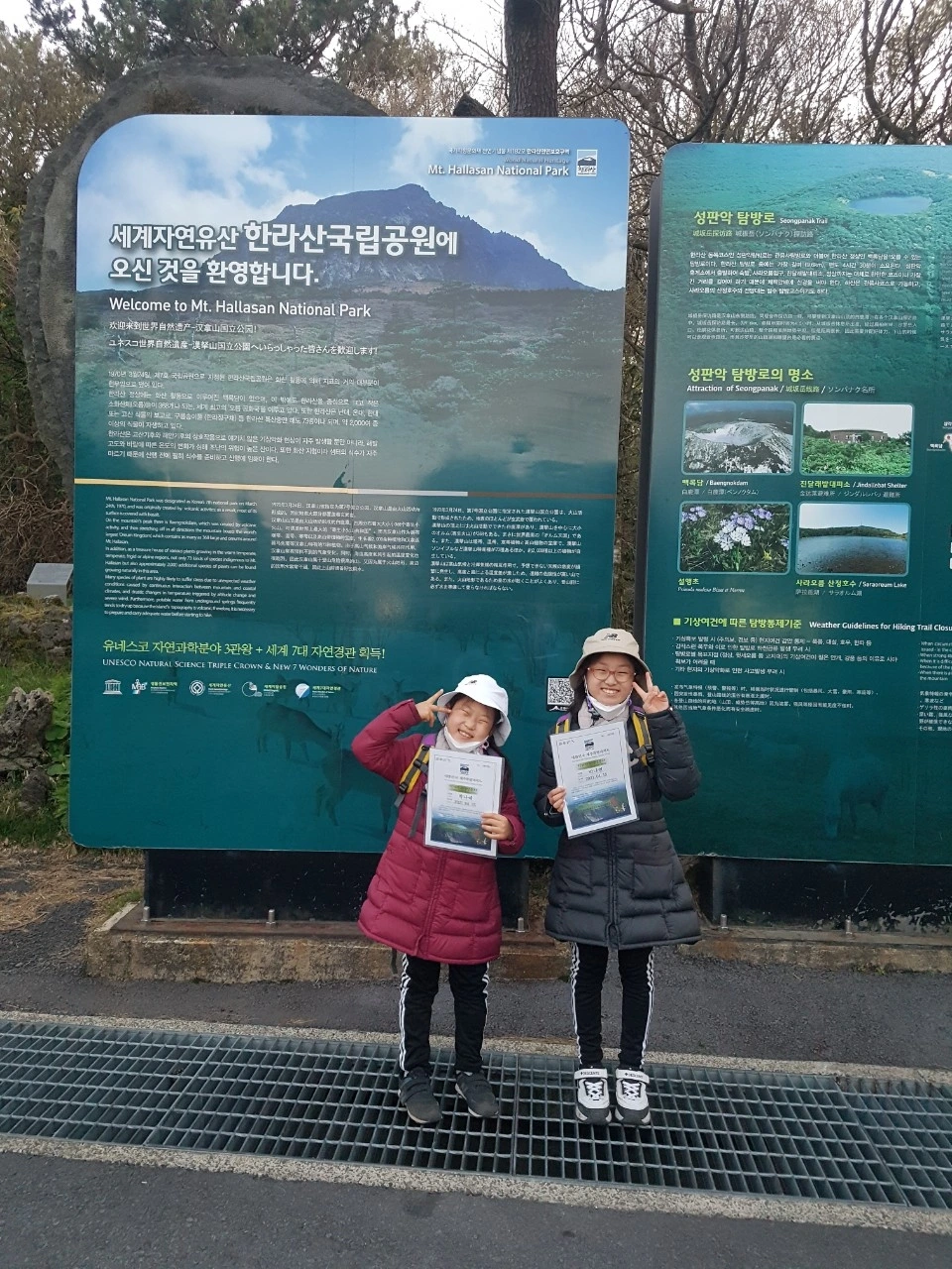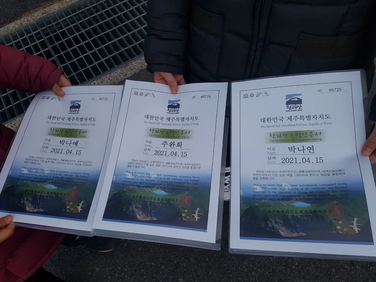 한라산 백록담에 있었던 우리의 사진으로, 내려오며 신청해 두었던 한라산 등정인증서도 받고 이제는 숙소로 돌아가야 할 시간.