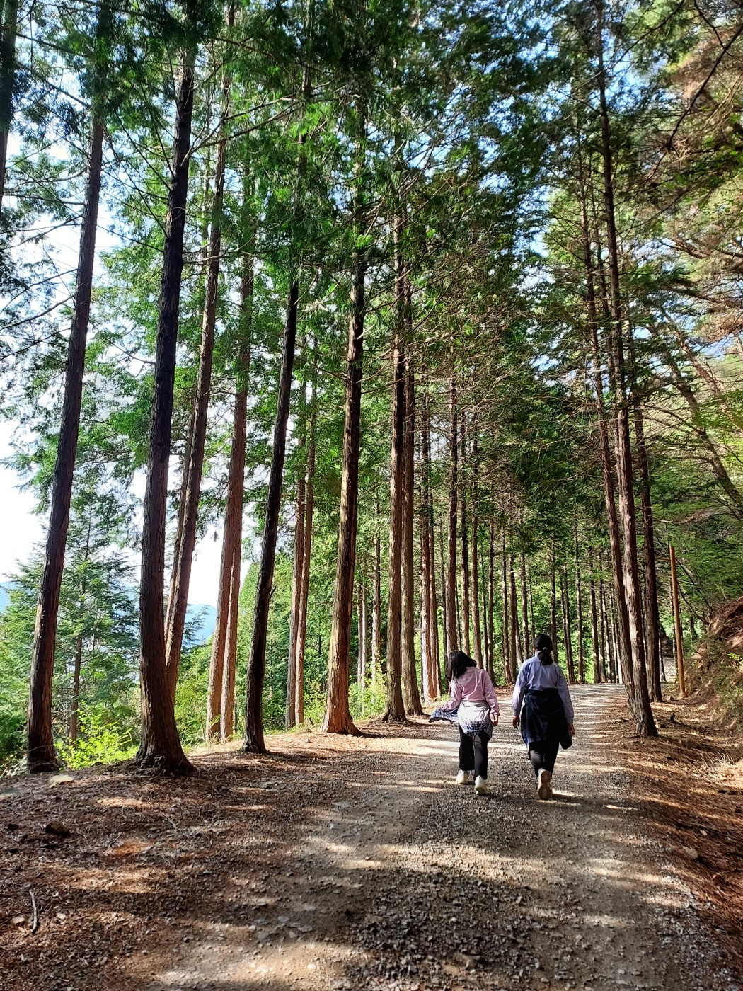 비가 온 후 날씨가 맑아지길 기다리며, 하동편백 자연휴양림을 산책하고 가까이에 있는 '남사예담촌'을 둘러보며 하루를 보냈다.