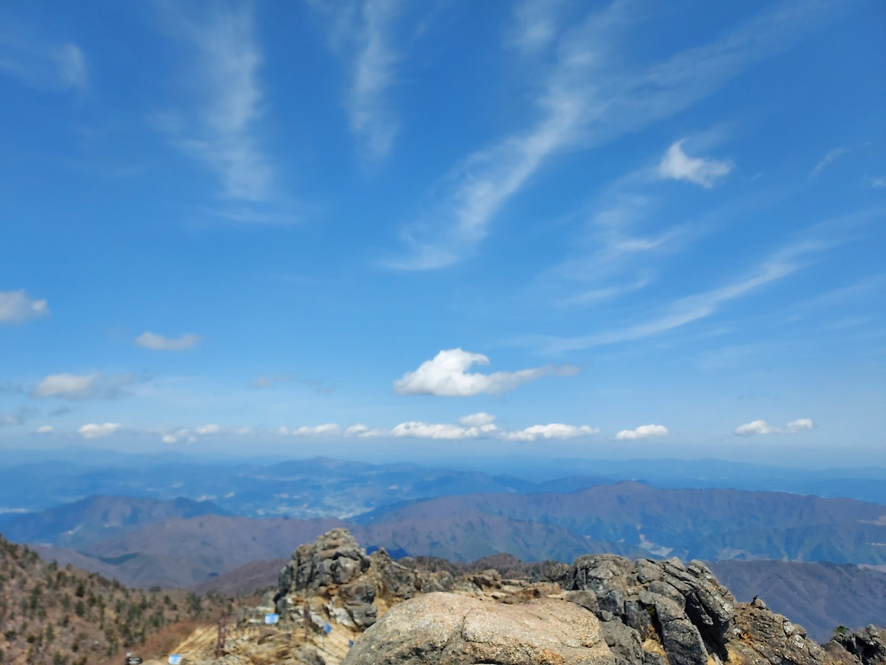 우리는 가방을 내려두고 지리산을 느껴보았다. 천왕봉을 중심으로 360°로 펼쳐지는 지리산의 능선이 신기할 정도로 여러 갈래로 이어지고 있었고, 높은 하늘과 땅 사이 어중간하게 떠있는 몽실몽실한 작은 구름들도 너무 귀여웠다. 지금 내가 보고 있는 것을 영원히 기억하고 싶을 만큼 정상에서 보는 지리산은 아름다웠고, 막연히 '높다'라는 것보다, 웅장함이 느껴졌던 천왕봉이었던 것 같다.