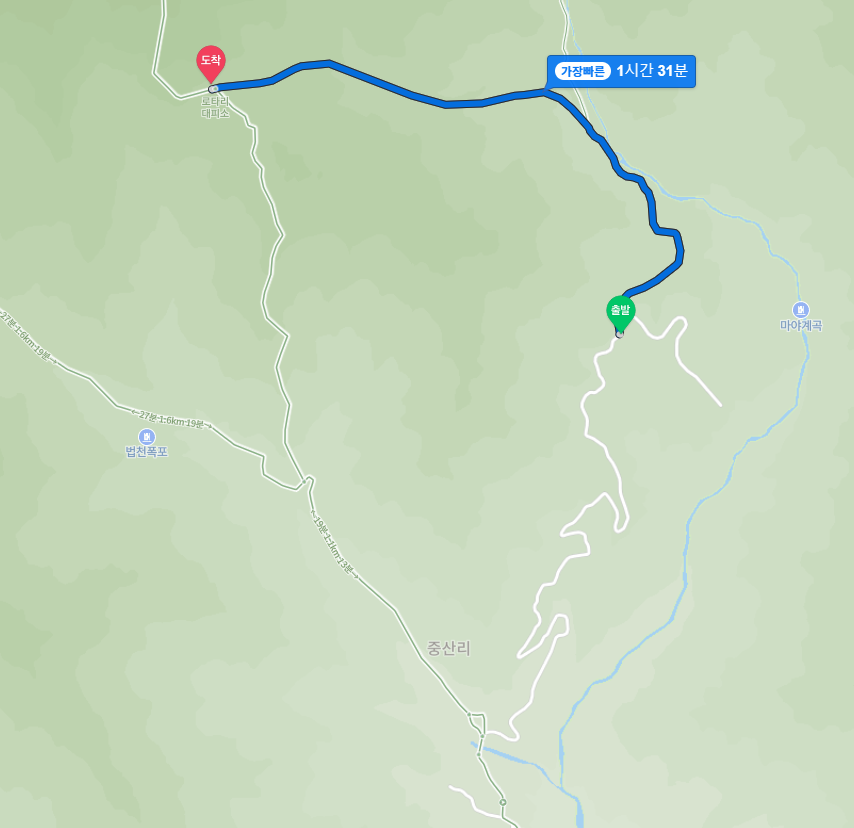 오늘이 이곳 숙소의 '퇴실' 일이라 어제 오후에 필요한 짐 몇 개만 남겨두고, 모든 짐을 차에 싣고 정리했던 탓인지 산을 오르기도 전인데 온몸이 뻐근하고 쑤신다. 그래도 지금 일어나야 늦지 않게 준비할 수 있기 때문에 꾸물거릴 시간이 없다. 중산리 주차장까지 40분 정도 운전을 해서 가야 하고, 8시 순두류 버스(아래에 설명하겠다.)를 '꼭' 타야 하기 때문에 여기에서 늦어도 7시에는 무조건 출발을 해야 하는 상황이다.