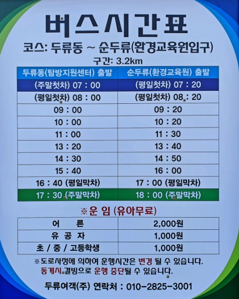 중산리 탐방지원센터에서 순두류(환경교육원)까지 가는 버스의 첫 차는 주말 07시, 평일 08시이다. 기본 운임료는 어른은 2천원, 초등학생은 1천원이므로 현금 4천원을 준비하여 7시 55분에 버스에 올랐다. 버스 안은 지리산 천왕봉을 오르는 어른들로 가득 찼고, 아이들은 우리 아이들 둘 뿐이었다. 그래서인지 버스 안에서부터 아줌마 아저씨들의 관심을 한 몸에 받으며 버스가 출발하길 기다렸다.
