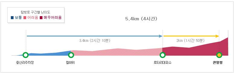중산리 주차장-칼바위-로터리대피소(법계사)-천왕봉