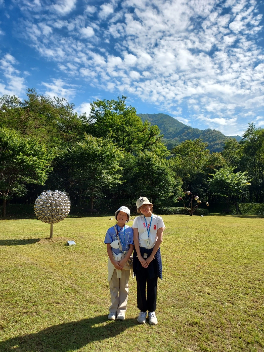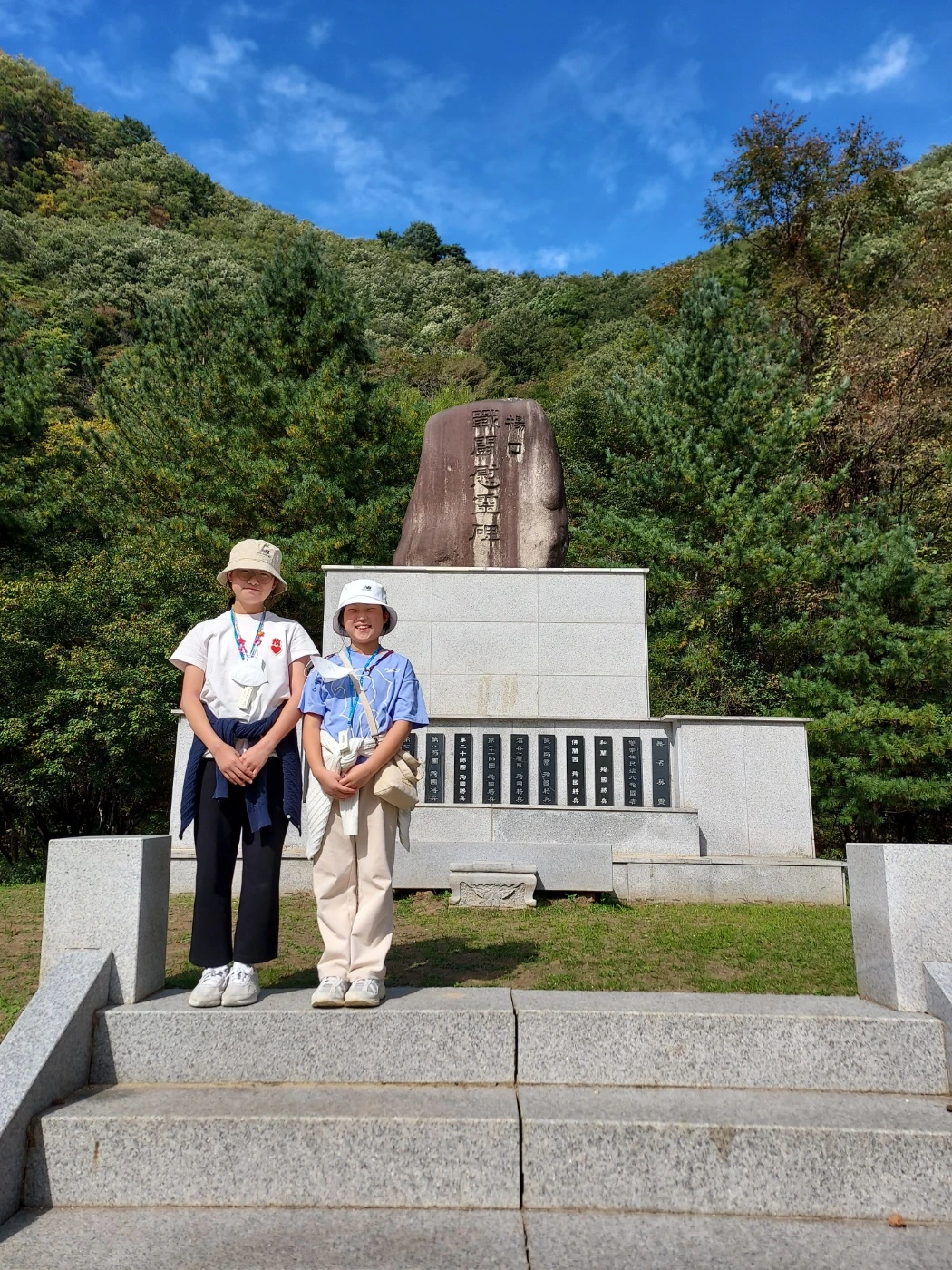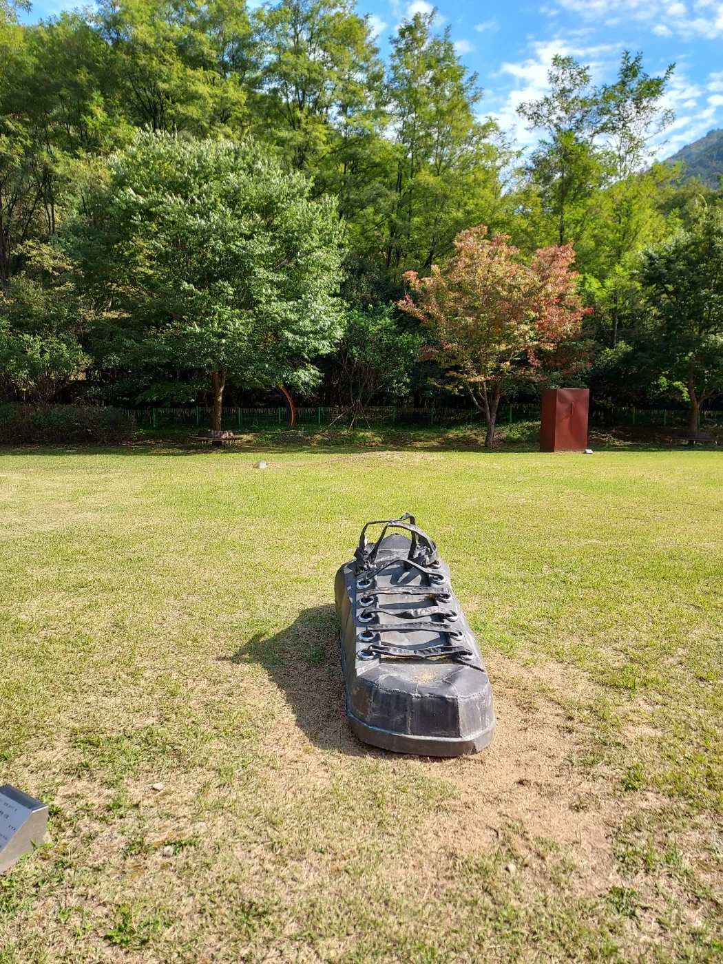 나는 아이들과 그분들의 고통과 희생 덕분에 우리가 현재를 잘 살아가고 있듯, 그분들이 겪은 세상의 고난과 아픔을 잊어서는 안 된다는 얘기들을 많이 나눈 것 같다. 조금은 무겁게 가라앉았던 우리들의 마음을 조금은 가볍게 해 주려는 걸까? 위령전투비 옆 조각공원의 풍경은 투명 그 자체였다. 맑은 날씨 때문인지 사물 하나하나의 빛깔이 선명하게 보였다.