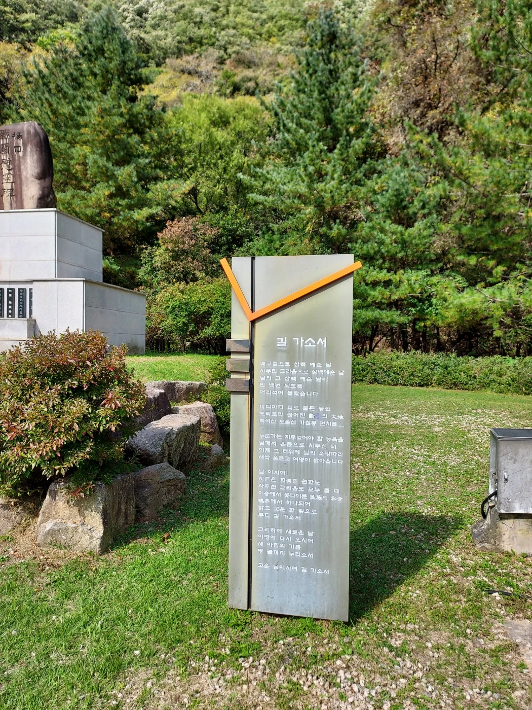 양구 전투위령비 앞에 '길 가소서'라는 시가 쓰여있었다. 아마도 빗물로 인해 아래로 번진 것일 가능성이 크지만, 선생님께서 들려주시는 시를 들으니 빗물이 아닌 눈물이 흐르는 것 같은 안타까운 마음이 느껴졌던 순간이었다. 선생님께서는 전쟁을 치르며 돌아가신 분들을 위해 묵념을 드리자고 말씀을 하셨고, 우리는 그분들을 위해 다 함께 묵념을 드렸다.
