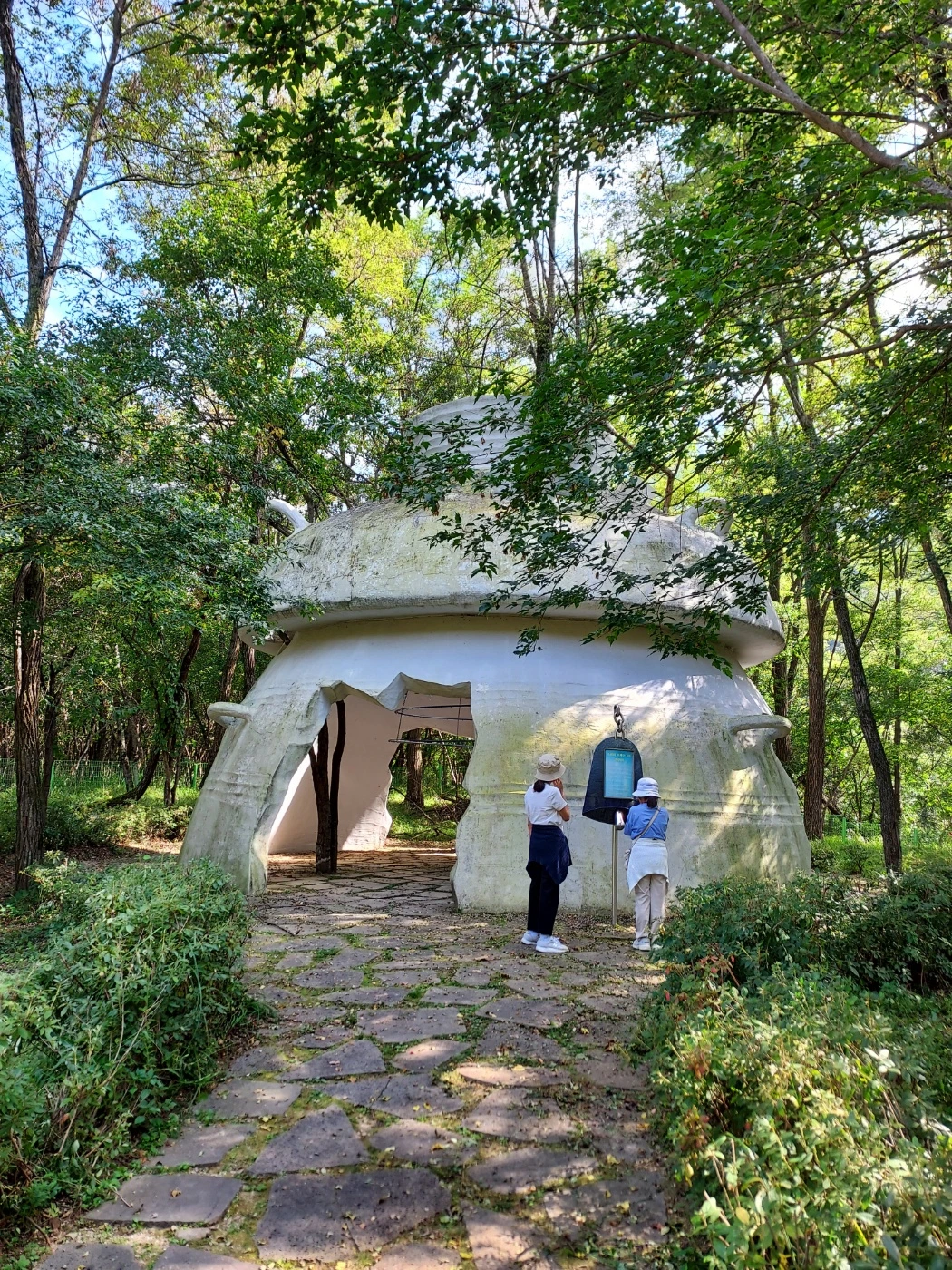 조각공원 안에는 여러 조형물들과 전쟁 때 사용했던 무기들도 있었지만, 아이들은 바람이 불면 큰 항아리 안으로 바람이 들어와 청아한 종소리가 조각공원에 울려 퍼질 것 같은 '소원을 들어주는 항아리'에 많은 관심을 보였고 항아리 앞에서 소원을 비는 모습도 보였다. 소원이 이루어지는 항아리에 대한 안내판의 설명을 옮겨보았다.