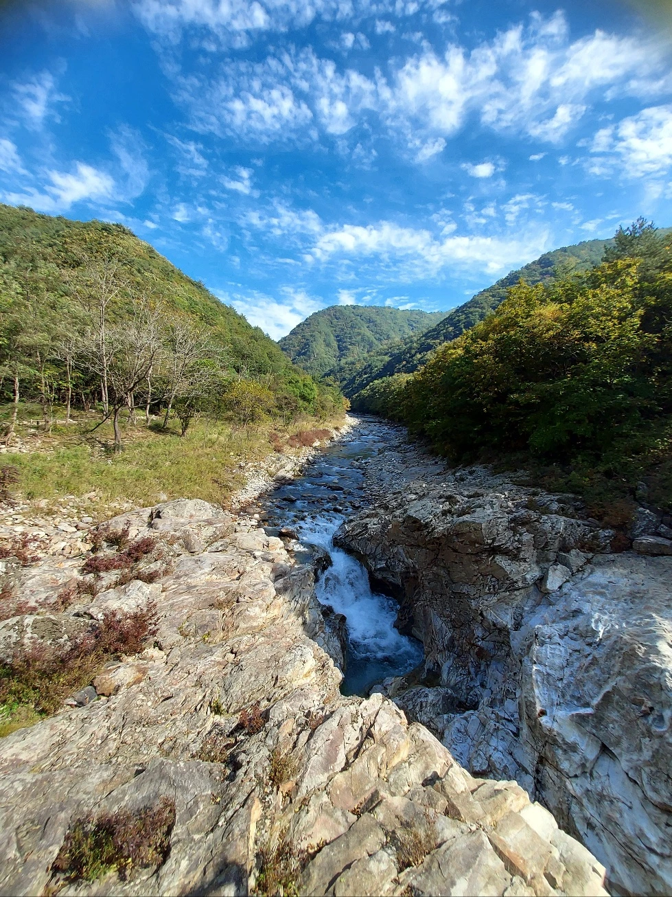 우린 처음엔 숲길 위에서 두타연을 바라보다가, 점점 가까이 다가가 두타연을 바라보았다. 두타연에 흐르고 있는 계곡물이 너무 투명하고 맑았다. 무언가에 홀린 듯, 처음엔 손만 살짝 담갔다. 그러다 어느 순간 발끝이 물속으로 들어갔고.. 여기까지.