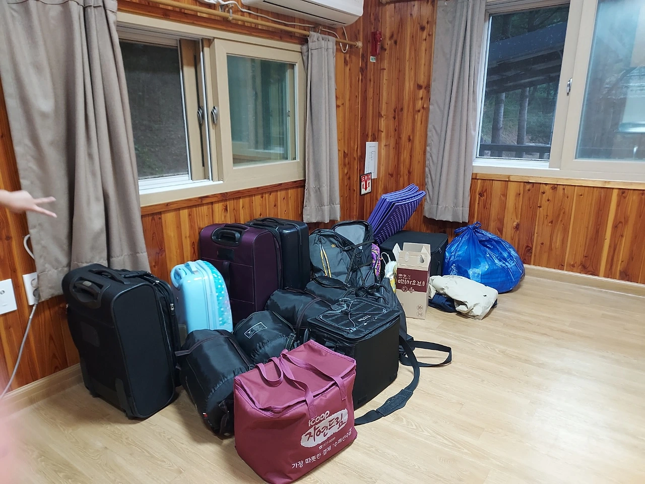 그날 오후, 광치자연휴양림 숙소에 트렁크에 있는 짐들을 다 옮긴 사진이 사진첩에 들어있었다. 이 많은 짐들이 트렁크에 들어가 있었으니 군인아저씨들이 놀랄 수밖에.. 군인 분들이 경상도분이라면 아마도 이렇게 얘기하지 않았을까?