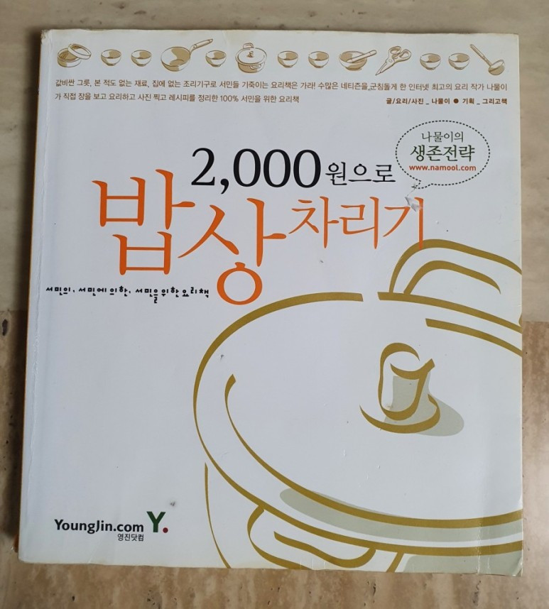 전문적인 요리사의 요리를 따라 하기에는 내 집에 조미료와 식재료가 풍성하지 않았다. 지금은 고인이 되신 김용환 님(나물이)의 <2000원으로 밥상 차리기> 책을 구입해서 열심히 책을 보면서 요리를 따라 하였다. 김용환 님의 요리는 설명이 쉽고 집에 있는 조리도구를 사용해서 요리를 할 수 있어서 나처럼 요리 초보에게는 아주 유용했다.