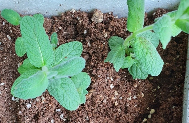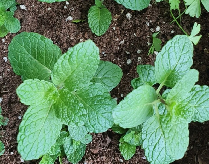 (좌) 작년 스피아민트 , (우) 흙고르기
