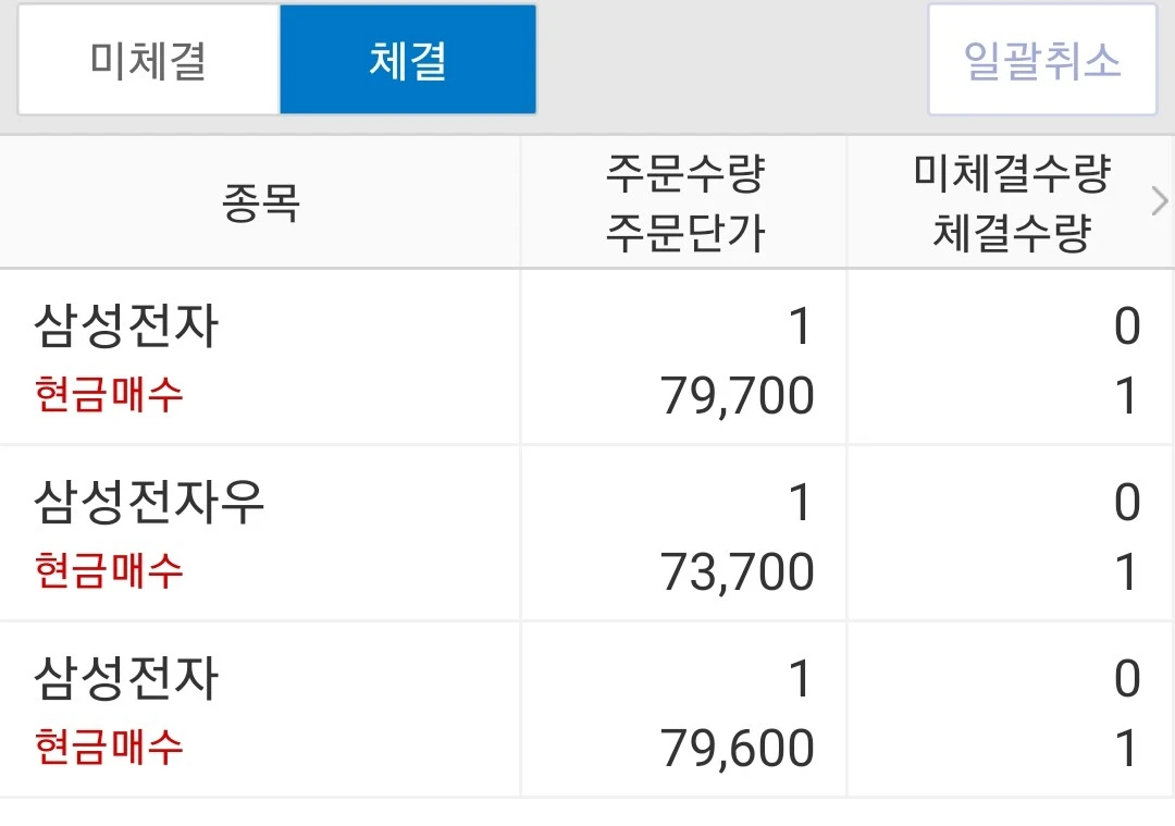나는 배당금을 받은 것으로 삼성전자 2주와 삼성전자우 1주를 매수했다. 총금액은 233,000원이 들었고 남은 배당금은 28,725원이다. 남은 돈에 조금 더 보태서 내일모레 우리금융지주 3주를 매수하려고 한다.