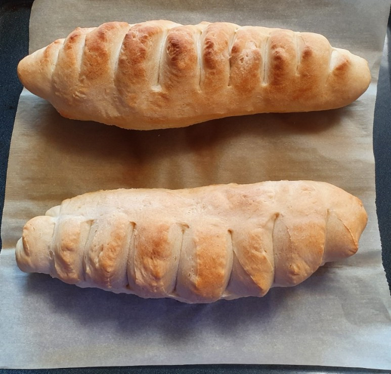 신랑은 어젯밤에 바게트 반죽을 해서 발효시켜 놓고 오늘 아침에 바게트를 구워내었다. 나와 아이가 갓 구운 빵을 좋아해서 신랑은 명절에 가족이 함께 하는 마지막 브런치를 위해서 바게트를 구웠다.