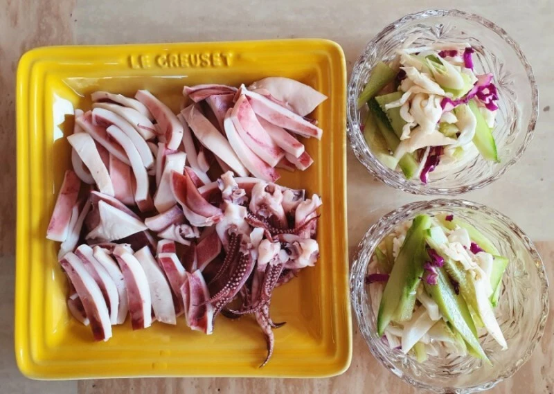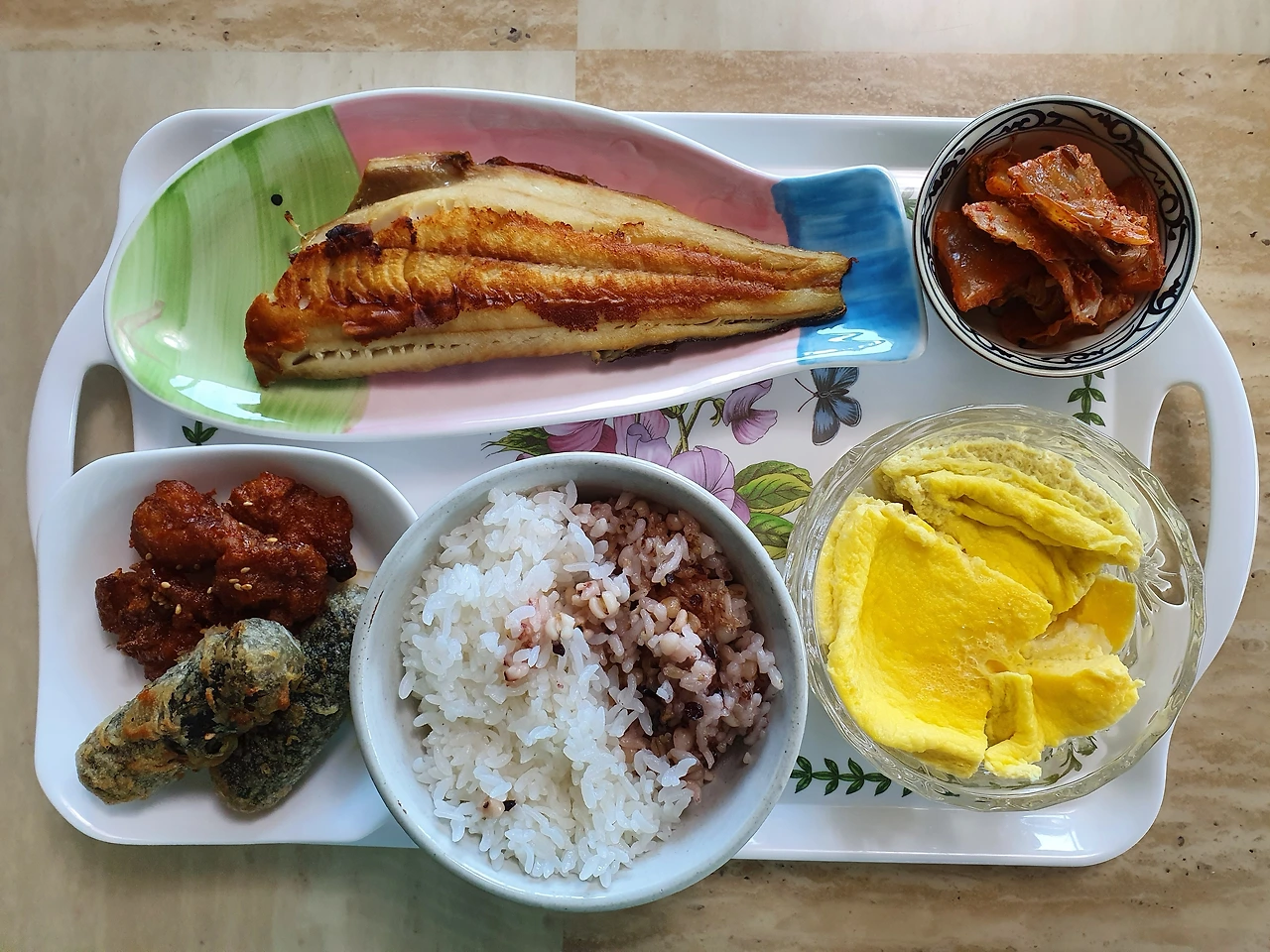 (사과주스, 해물 잔치 5봉, 재래김, 계란 30구 1판, 버터, 핫도그 빵, 광어회, 올리브 오일 2병, 포도씨유, 미국 냉장돈육 목심, 미니 버터 크라상, 손질 임연수어 등등)