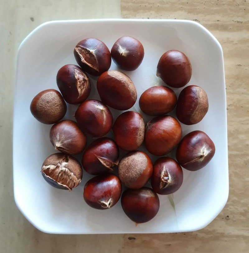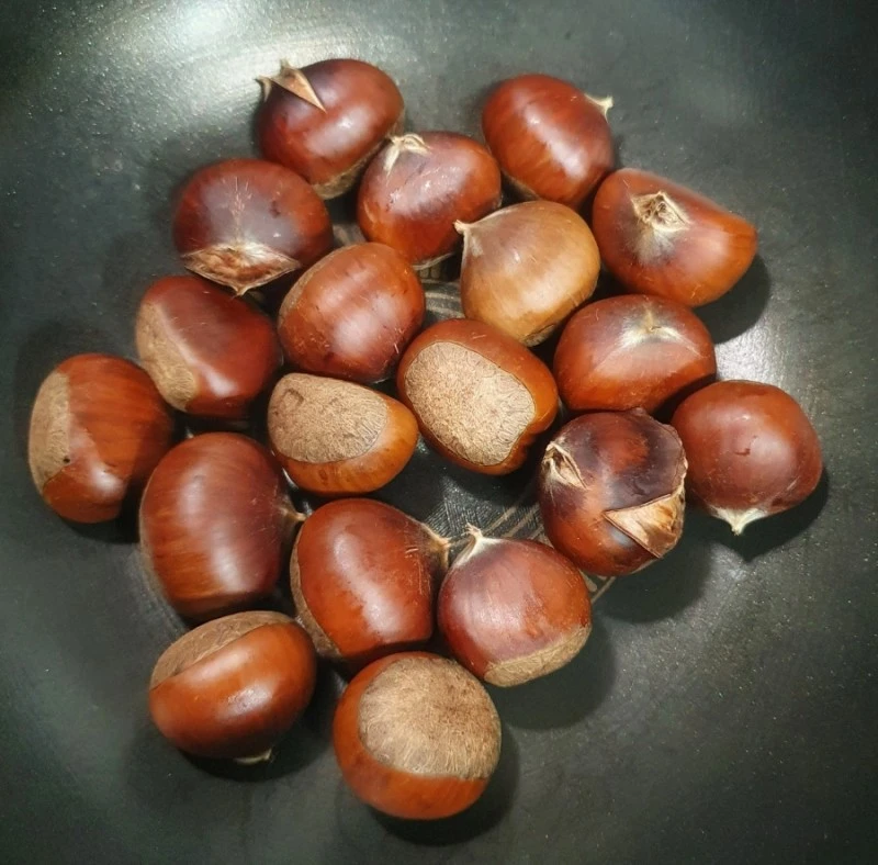 낮에 지인이 문 앞에 밤을 조금 두고 갔다. 본인도 선물 받은 밤인데 내 아이가 생각이 나서 조금 가져다 놓았다고 한다. 나와 신랑은 오래전에 집에서 군밤을 만들어 먹고 싶어서 군고구마를 만드는 냄비에 밤의 끝을 잘라 넣고 구웠는데 아주 요란한 소리를 내면서 밤이 터진 적이 있다. 황급히 가스레인지 불을 껐지만 겁에 질린 나와 신랑은 집에서 밤에 관한 요리를 잘하지 않는다. 가끔 밤에 관한 요리를 할 때도 껍질을 깎아서 나온 밤을 사용한다.