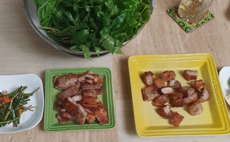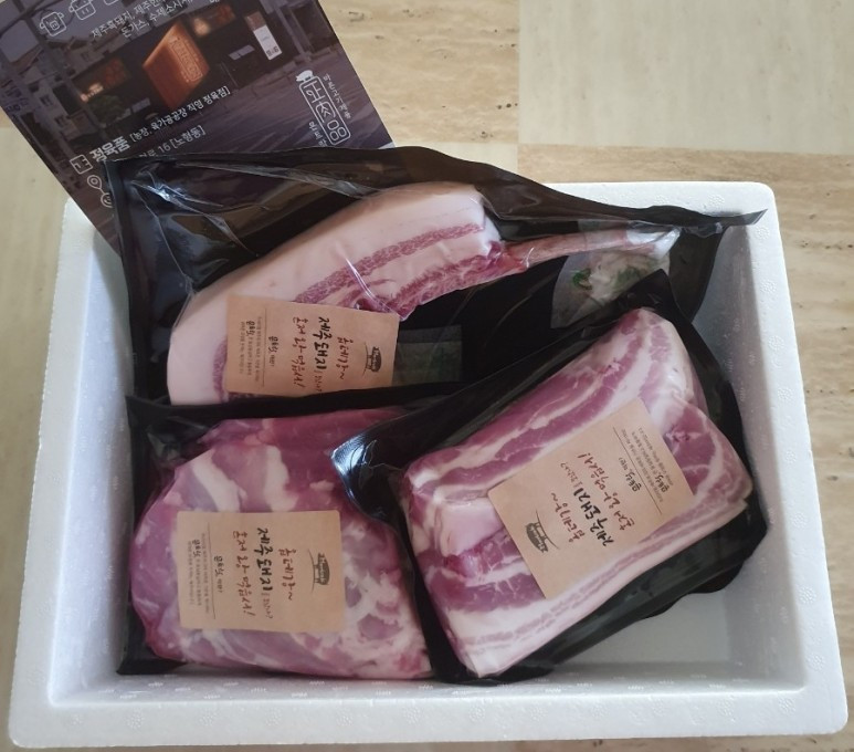 신랑 부서에서 보내온 선물과 내 가족의 크리스마스 저녁식사 신랑 회사의 부서에서 회식을 하지 못하고 다시 회식비가 남아서 이번에는 제주도 흑돼지를 택배로 보내주었다. 지난주에 그 택배를 받고 크리스마스에 적당히 집에서 먹을 것이 없어서 고민이었는데 가족이 모여 앉아 고기를 구워 먹으면 되겠다고 생각을 하였다. 크리스마스 저녁에 신랑이 구워주는 고기로 간소하지만 행복한 가족만의 크리스마스 파티를 하였다.