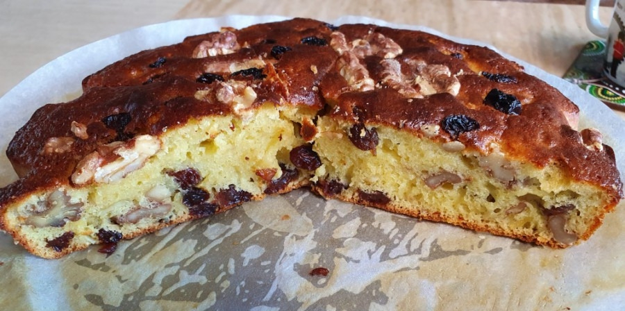 호두와 건포도를 듬뿍 넣어서 구운 빵