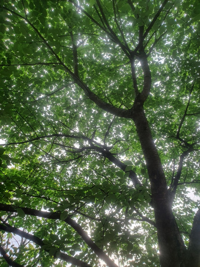 얼마 전까지도 산책할 때 연한 연두색을 보이던 나뭇잎들은 진한 초록색으로 바뀌어 있었다. 자연 속에서 나무가 뜨거운 햇살과 바람 그리고 비에 당당히 맞서 열심히 노력을 기울여 연두색 잎인 유년 시절을 지나 초록색 잎인 청춘시절로 도래한 것 같은 느낌이 들었다. 파란 하늘에 좀 더 가까워지고 싶은 꿈을 이루기 위해 초록색 잎을 가지고 하늘로 나뭇가지를 쭉쭉 뻗어나간 나무의 모습은 웅장하고도 멋지다.