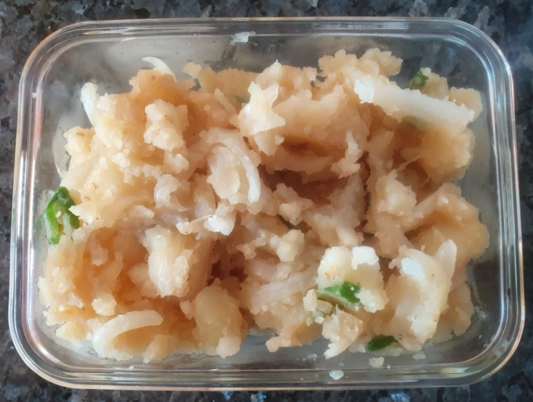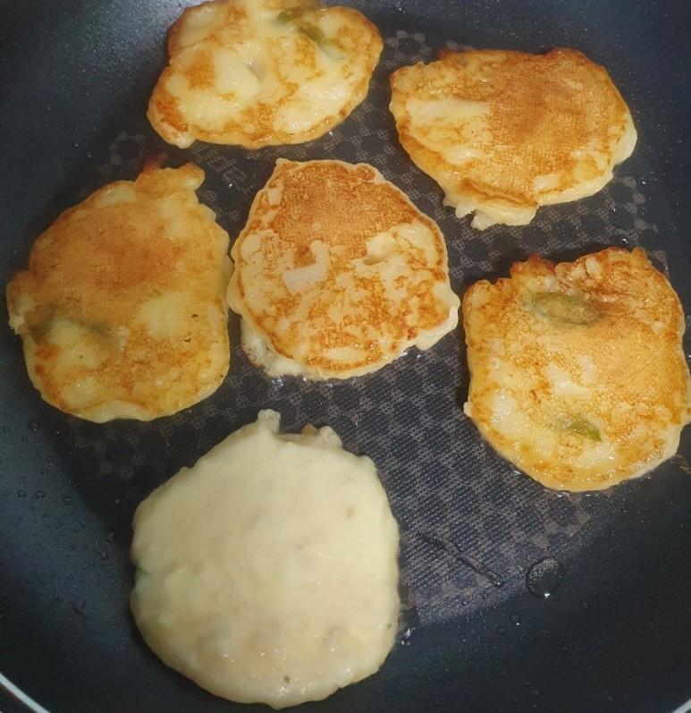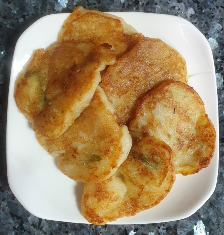 신랑이 출근한 일요일이 되었고 나는 아이가 기숙사로 돌아가기 전에 아이에게 집밥을 정성껏 만들어 주고 싶었다. 성공하지 못했던 간장 감자 샐러드가 절반 정도 남아있어서 나는 그것을 마저 으깨어 부침가루와 물을 섞어 반죽을 해서 감자 부침개를 만들었다. 세상에나 이번 요리는 성공적이었다! 아이는 간장 감자조림보다 감자 부침개가 더 맛이 좋다고 맛있게 먹었다.