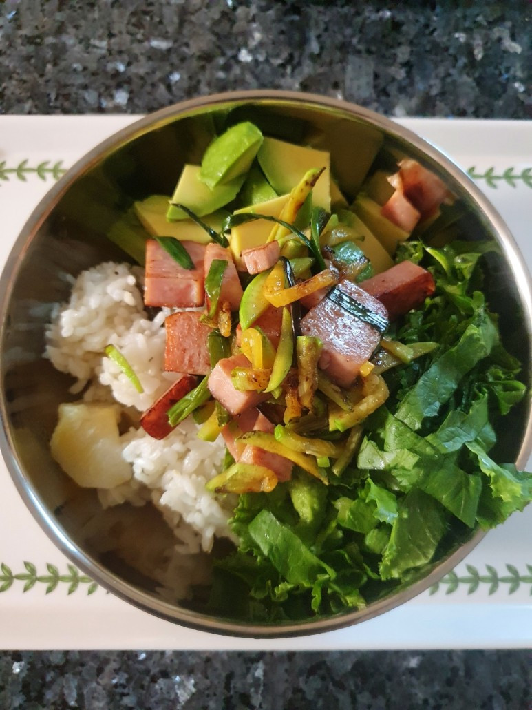 햄과 여러 가지 채소가 들어간 비빔밥,