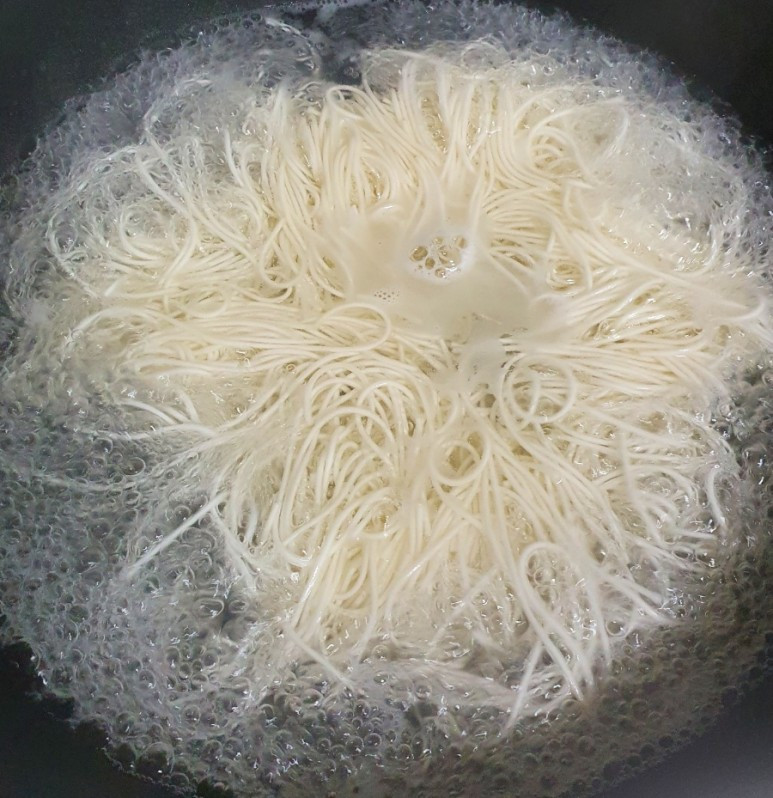 냉장고 안에 있는 오이 한 개를 발견한 나는 오이냉국을 만드는 방법대로 오이를 무치고 소면을 삶았다. 그리고 오이냉국을 만들어서 삶아진 소면을 넣어서 국수처럼 만들어 얼음을 동동 띄워서 아이와 함께 한참 더운 낮 시간에 먹었다.